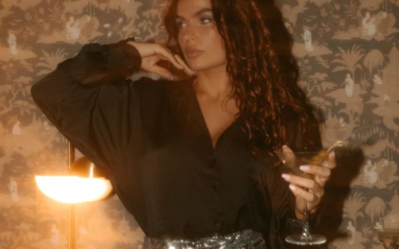 Silk or satin button-ups with dramatic jewelry, tucked into a high-waisted skirt or elegant trousers. Consider leaving an extra button undone for evening settings.