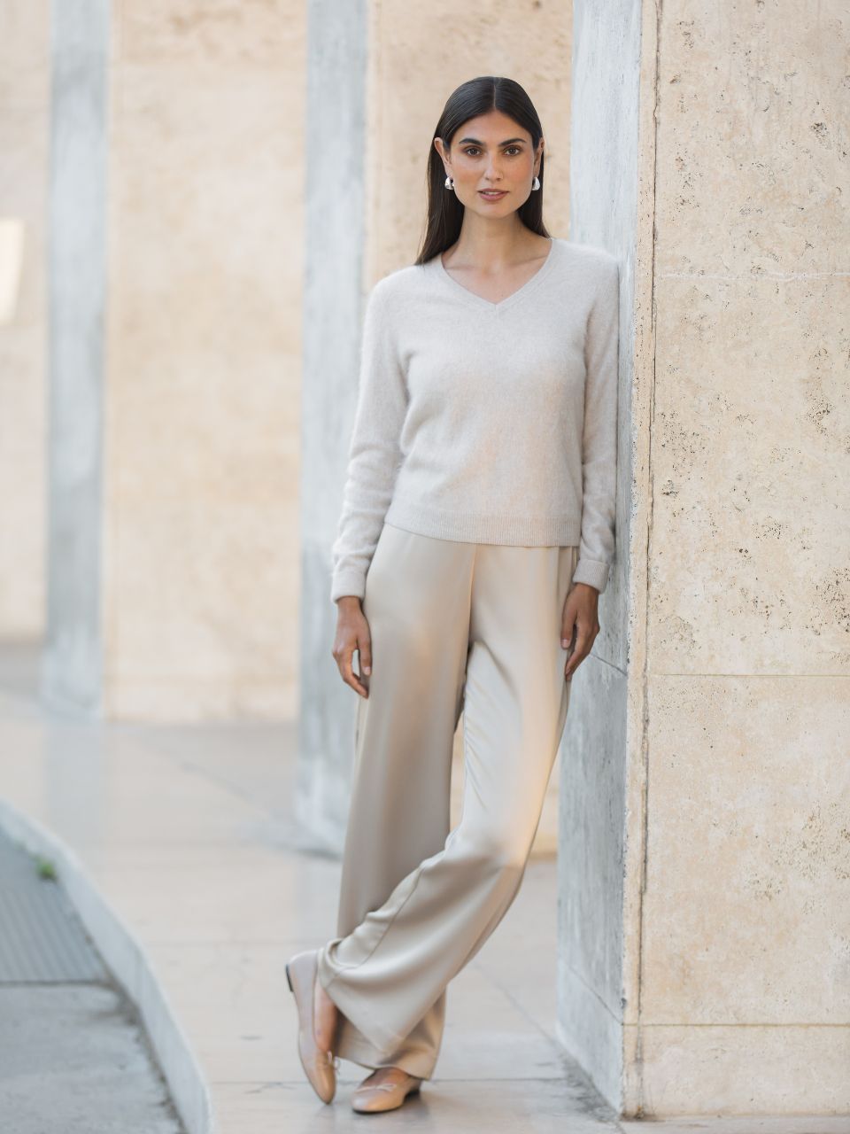 Cashmere is your investment layer—lightweight yet incredibly warm, perfect for chilly offices, evening events, or weekend luxury. Dress it up with tailored pieces or down with denim; its refined texture elevates any outfit.