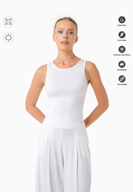 Annya Sporty Tank Top in White combines performance with sustainability. Made from 86% recycled polyamide and 14% elastane, this slim-fit tank resists pilling while delivering exceptional stretch and shape retention. Generously proportioned straps enable unrestricted movement through yoga, gym sessions, and daily wear. The breathable, quick-drying fabric keeps you comfortable during high-intensity activity. Finished with subtle ORGANICATION lettering and back-neck branding for a refined look.