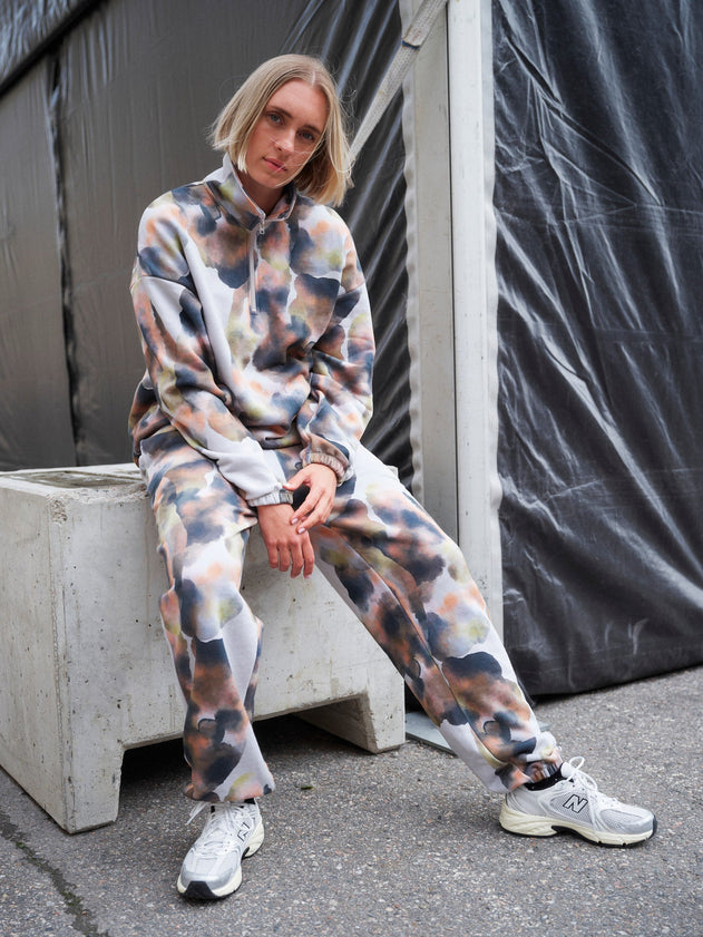 These Aquatic sweatpants combine comfort and style with their full aquatic-themed print and a woven "Know your power" patch on the front. Crafted from 100% organic cotton and GOTS-certified, they feature an elastic waistband and a soft, brushed interior for all-day comfort. Note that double sizing corresponds to the larger size for a relaxed fit. Perfect for those seeking sustainable and expertly designed casual wear.