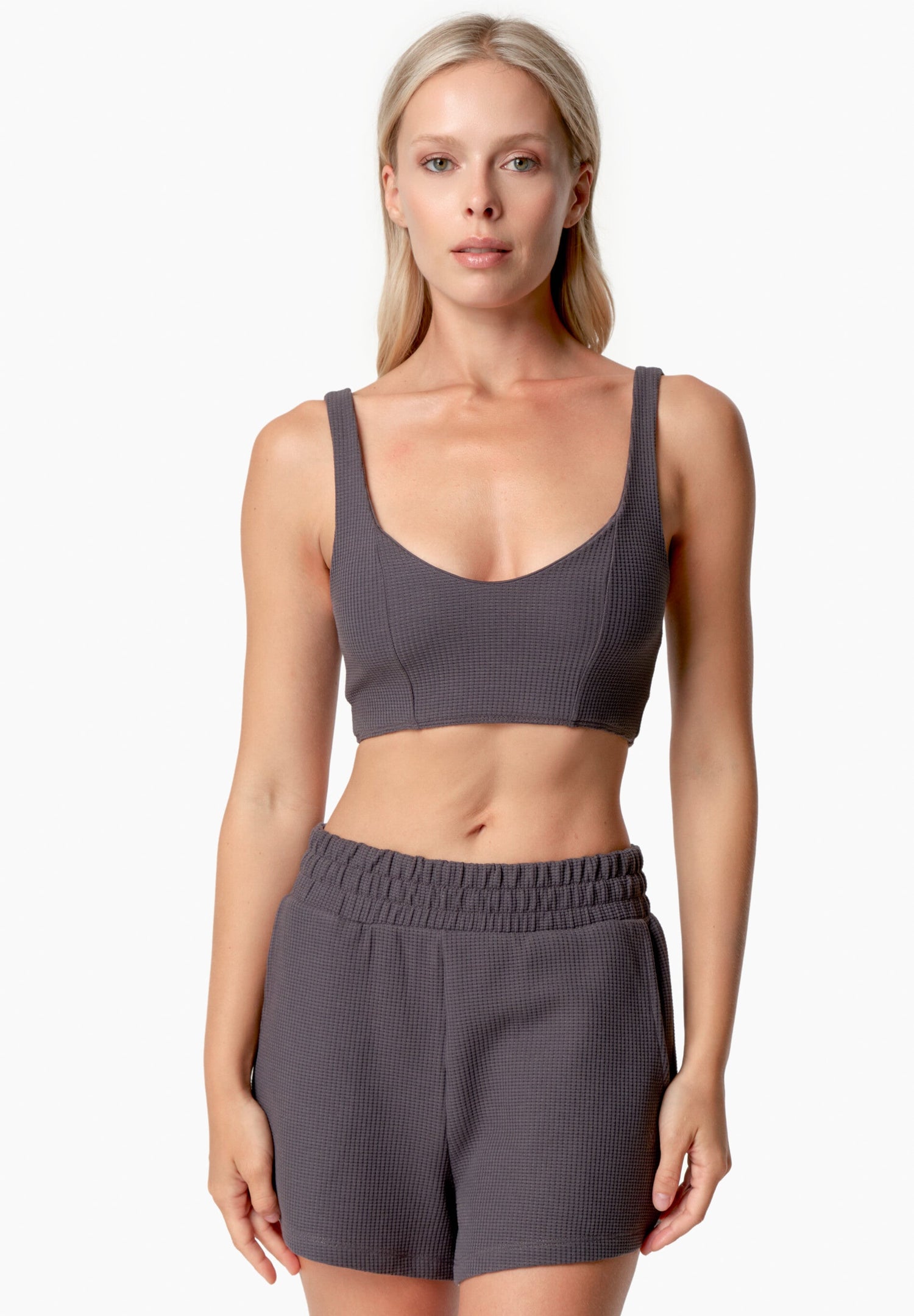 Bella Waffle Crop Top Black