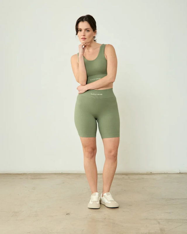 Performance-focused biker shorts crafted from organic cotton in a vibrant apple green. The seamless construction features reinforced density for opacity and confidence during intense workouts. Designed with a subtle contouring effect, these shorts deliver a flattering silhouette while maintaining freedom of movement. The elastic waistband and lightweight fabric provide all-day comfort without restriction, making them ideal for training, studio classes, or everyday wear.