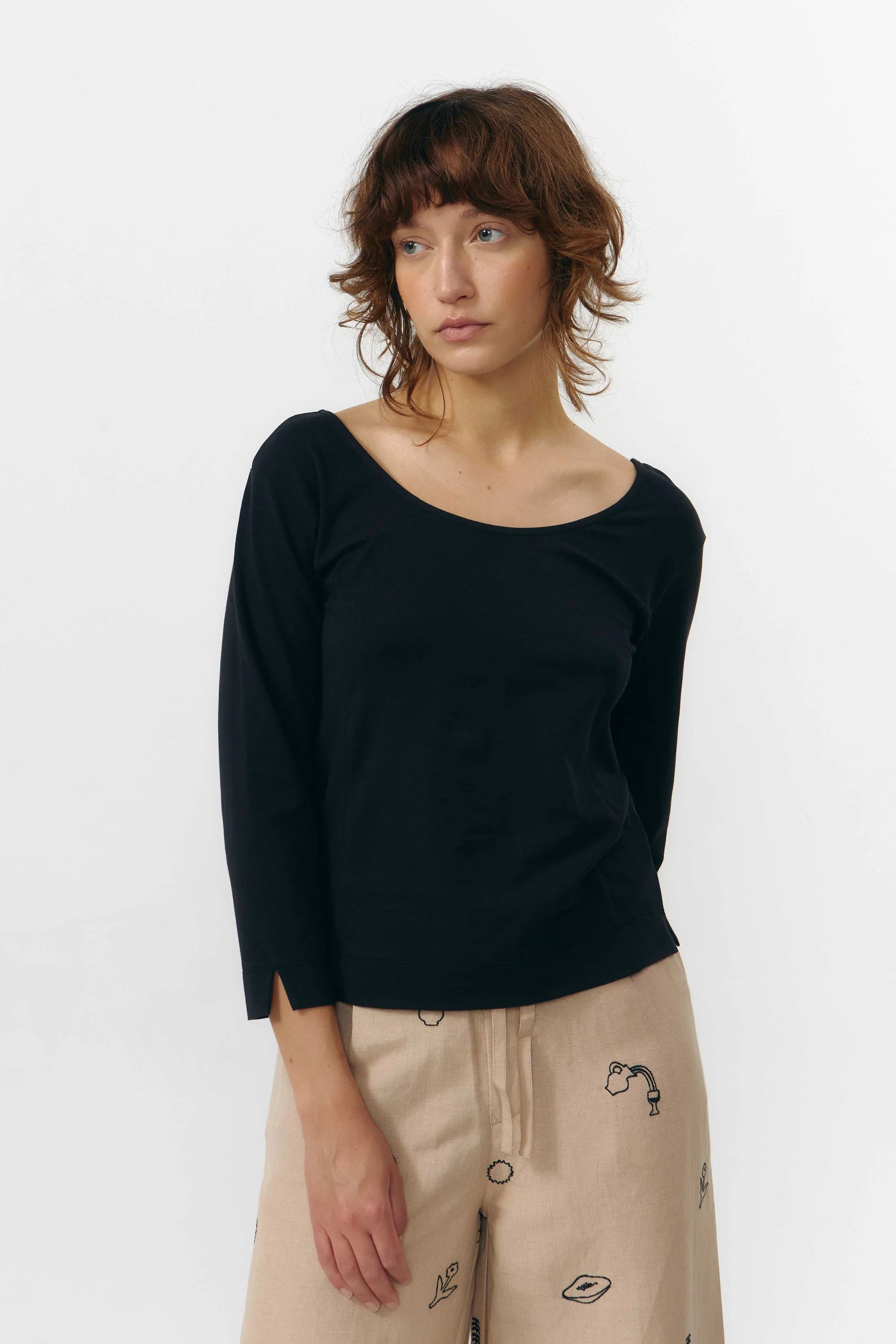 Soft, breathable t-shirt with 3/4 sleeves and a round neckline. The regular fit and plain design make it effortlessly versatile—a wardrobe staple you'll reach for again and again.