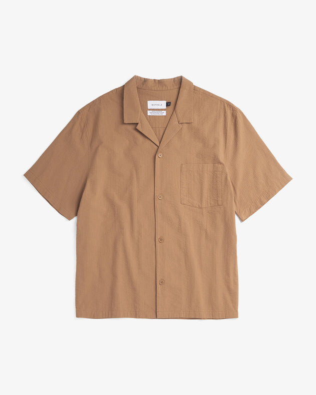 Bowling Shirt Seersucker Caramel Brown