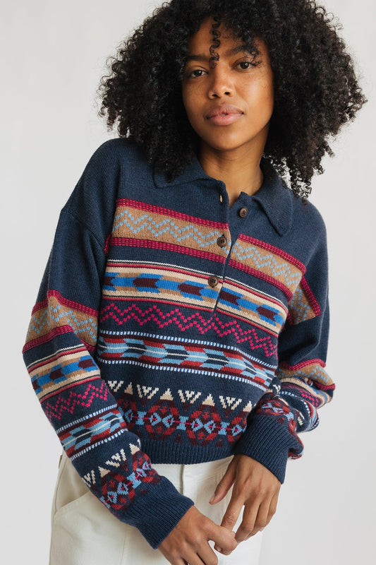 The Buckow Knit Jacquard stands out as a sustainable knit that balances classic appeal with contemporary style. Its distinctive collar and gently cropped silhouette give it a fresh look, while dropped shoulders and embossed “TWOTHIRDS” buttons add refined details. This piece is poised to become a consistent favorite.