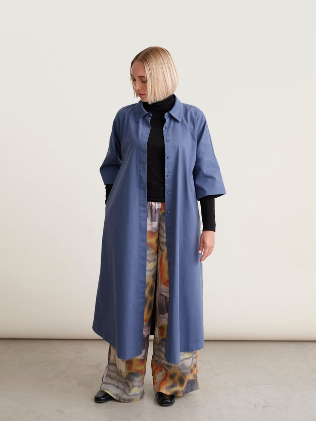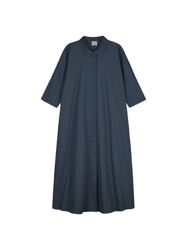 Crafted from organic cotton twill, the Ellie Twill Dress in Vintage Indigo Blue offers a refined blend of comfort and durability. Its classic collar and front button closure provide effortless style, while ¾ sleeves and a wide hem ensure ease of movement. Thoughtfully designed with side seam pockets, this dress combines practical functionality with timeless elegance, making it a versatile addition to any wardrobe.