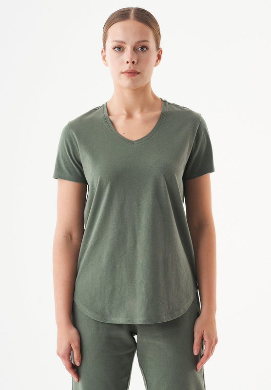 Tuba Basic Organic Cotton V-Neck T-Shirt Olive