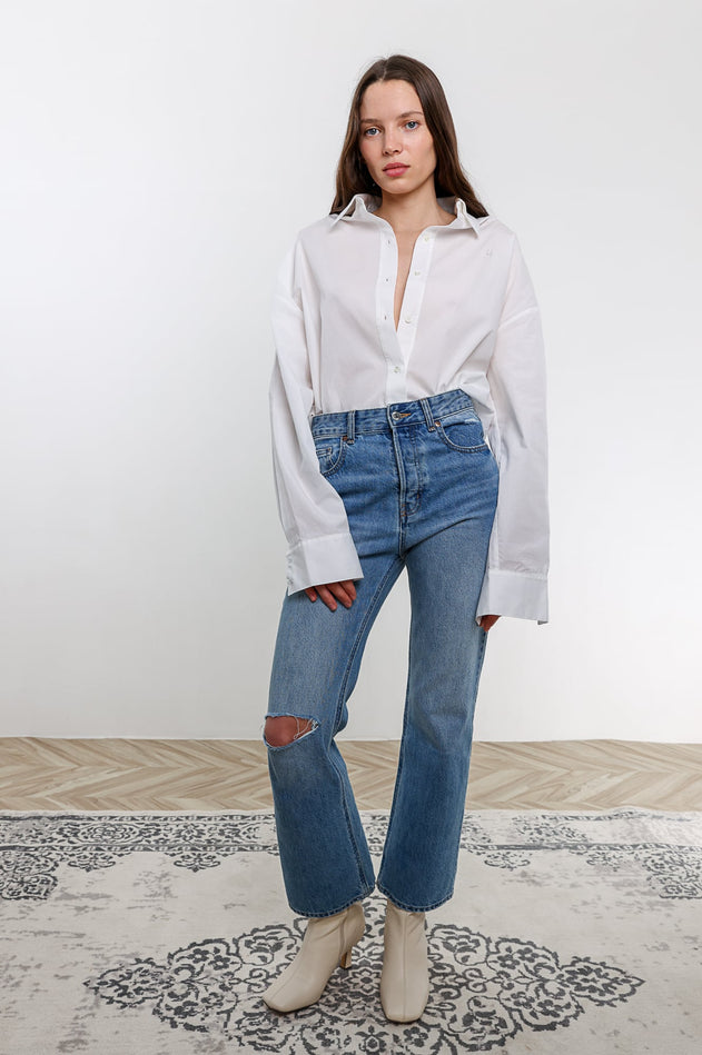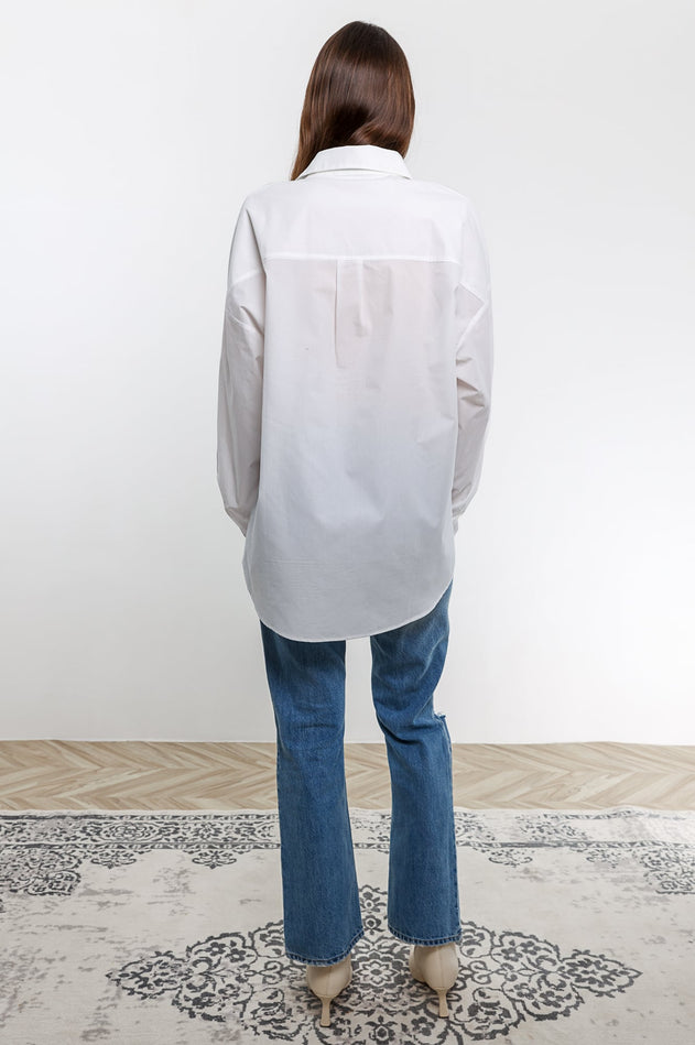 Introducing the Veld Ex-Boyfriend Shirt, a refreshing take on the classic button-up that leaves ex-boyfriends in the dust. Crafted from organic cotton, this lightweight and smooth shirt features an oversized cut, relaxed fit, pointed collar, and subtle embroidery on the chest. Pair it with denim for a chic and effortless look, or leave it open over your favorite bra to show the world you've moved on. It's time to embrace a new chapter with the Veld Ex-Boyfriend Shirt.