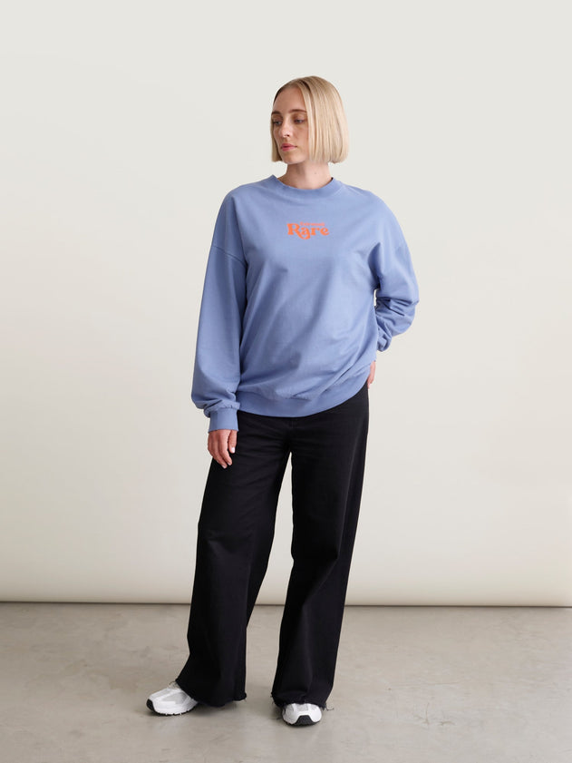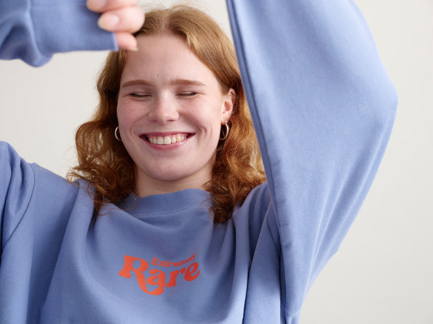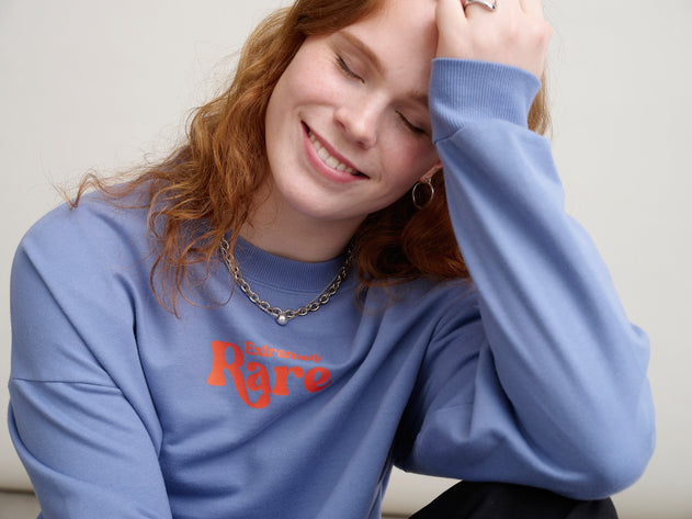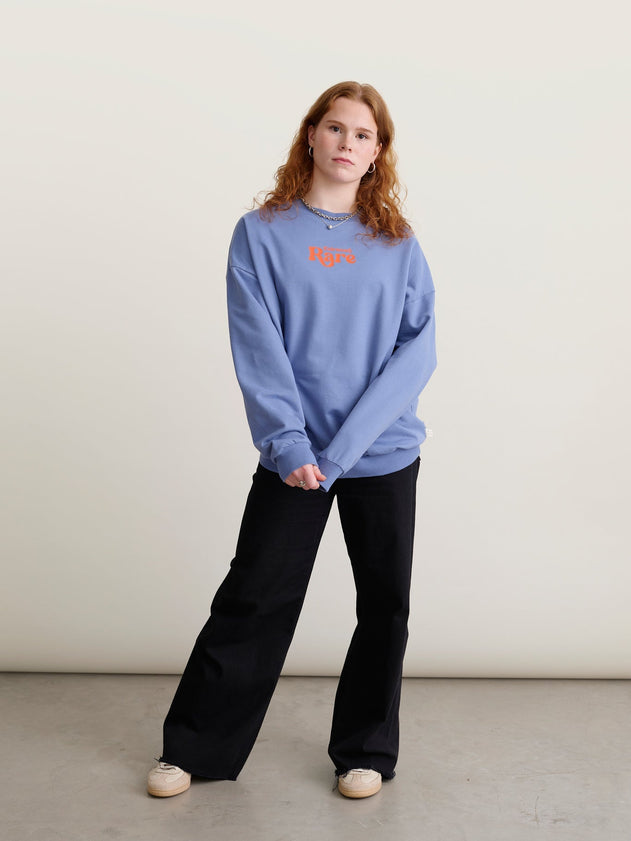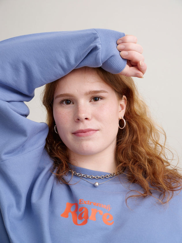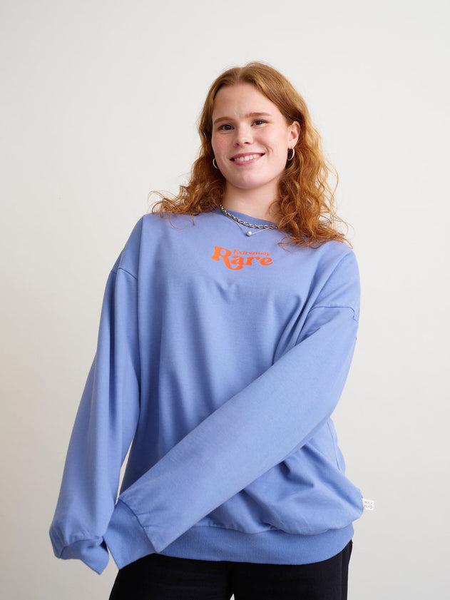 This Extremely Rare Sweatshirt in blue offers a relaxed, unisex fit designed for comfort and style. Featuring a distinctive front print, it stands out as a unique piece in any wardrobe. Crafted from 100% organic cotton and GOTS-certified, it ensures sustainable quality and softness. Note that double sizes correspond to the larger size, providing an easy fit choice. Ideal for those seeking both eco-conscious materials and exclusive design.