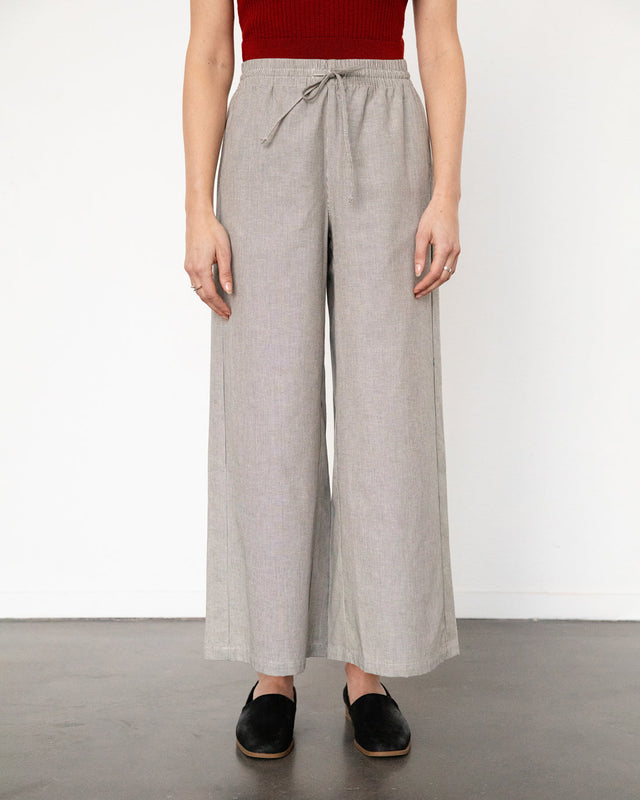 Expertly crafted and designed for comfort, the Flared Pants Micro Stripe have a minimalistic style and a wide leg cut. The elastic waistband offers a perfect fit for any body type. Elevate your wardrobe with this versatile piece, perfect for any occasion.