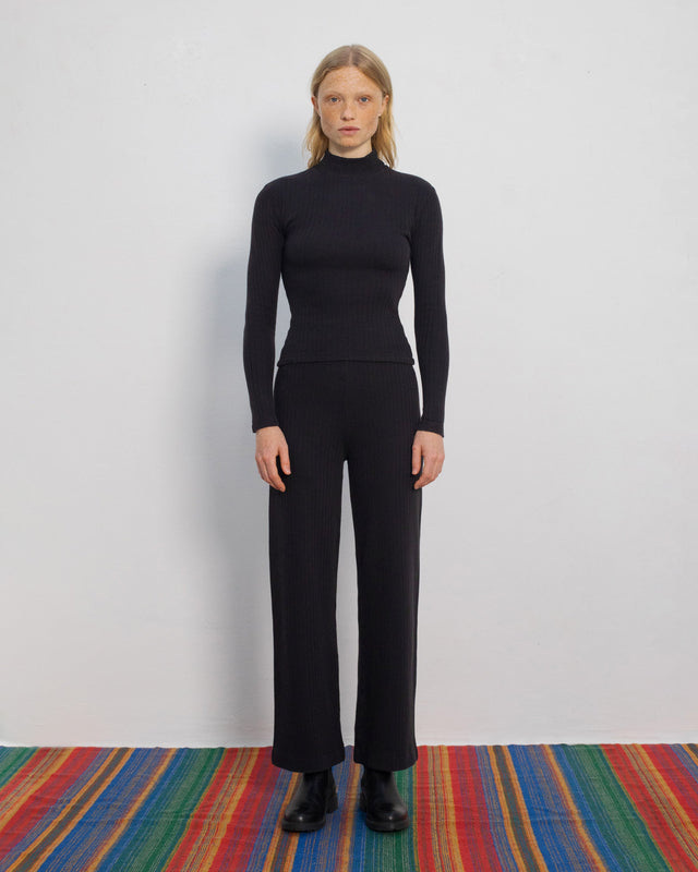 These ribbed pants combine comfort and style, ideal for everyday wear in cooler weather. Crafted from 100% organic cotton in Portugal, they offer a soft, breathable feel while adapting comfortably to your body. The relaxed fit and slightly flared legs provide ease of movement, complemented by an elastic waistband for a secure yet flexible fit. Perfect for various occasions, they blend practicality with a refined, natural look.