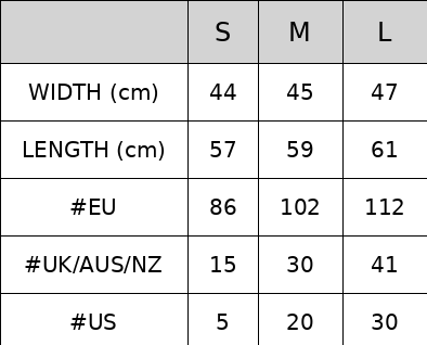 Size Guide - Product Measurements