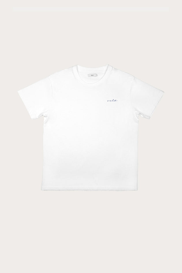 Find the perfect fit with the Griffith Crew Neck T-shirt, crafted from incredibly soft 160 gsm Organic Cotton that feels light yet structured for a clean, straight fit. Features a screenprinted graphic design on the back and a Veld logo on the front.