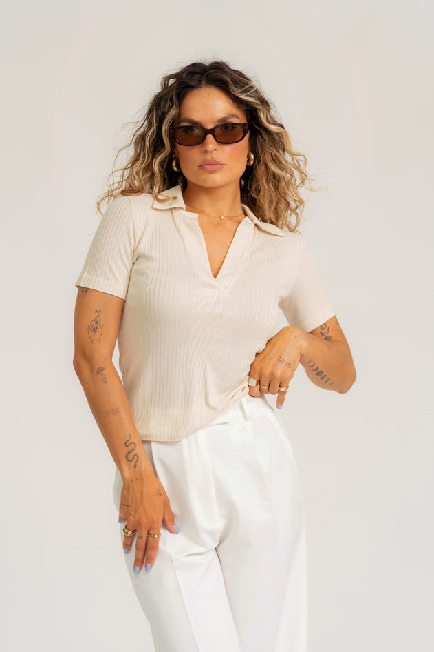 Short sleeve shirt with a classic fit, straight-cut, v-neck Polo collar and short sleeves.