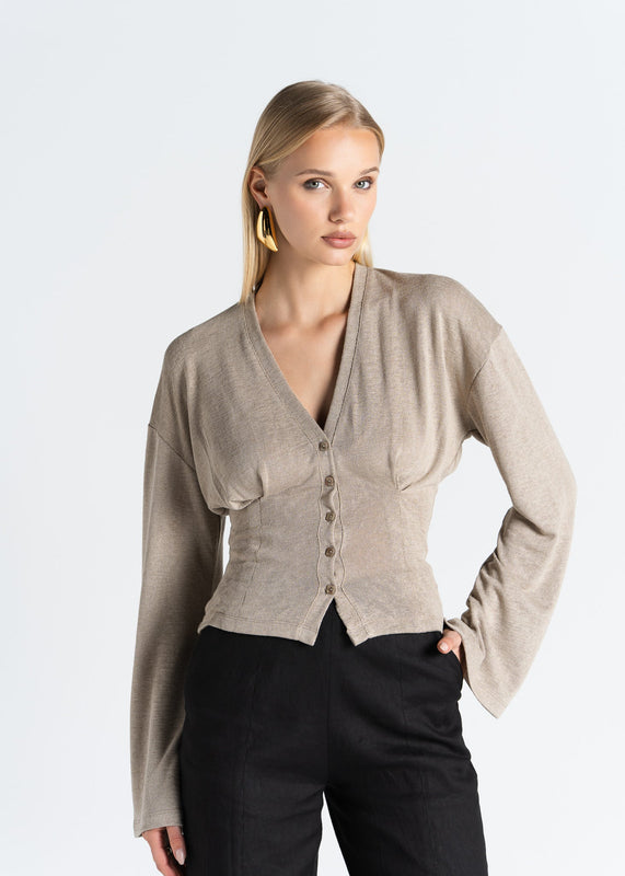 The D'Arc Blouse blends structure and flow to flatter your shape with effortless elegance. Soft and comfortable, it features delicate buttons, pleats, and gracefully draped long sleeves for a touch of movement and drama. Perfect for both boardroom and evening looks, it brings power and polish to any outfit.