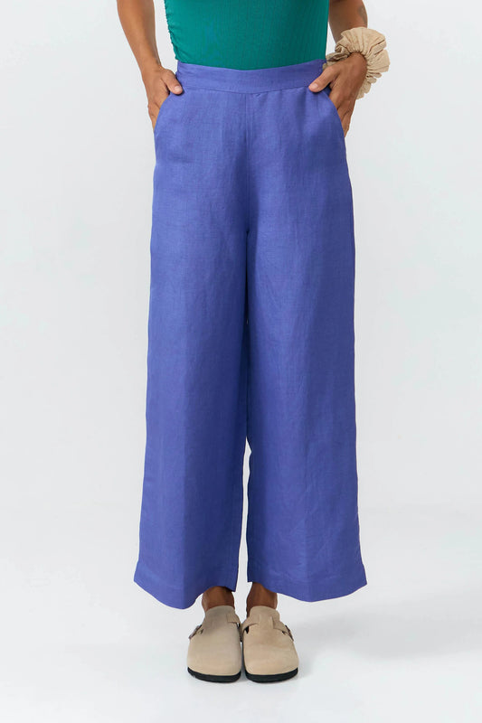 High waist culotte pants with front pockets and a wide-leg design. Side zip fly and top button fastening. Elastic back waistband for a better fit. It offers a soft and breathable feel that works throughout the day. One of those pieces that quietly does its job well.