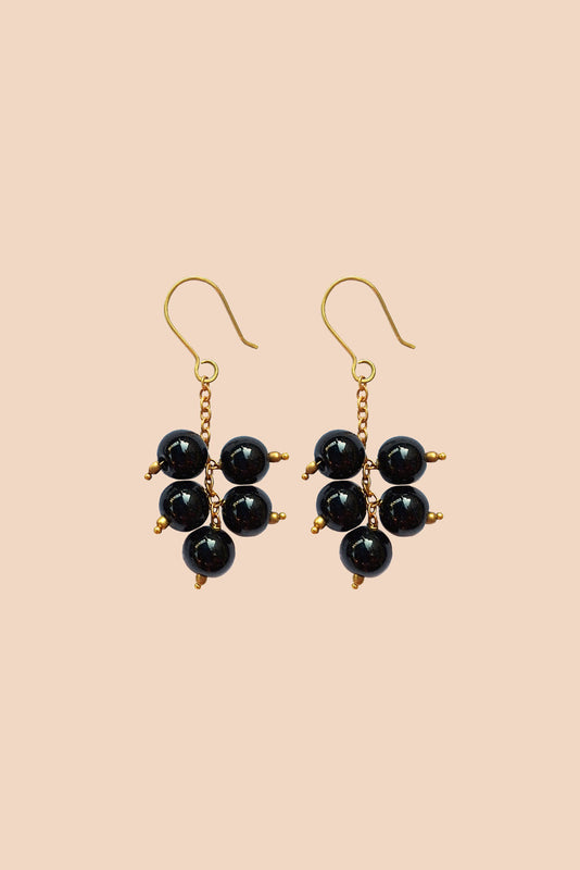 Kaiko's Anamika earrings are handcrafted in Nepal. The pearls of the black Anamika earrings are Onyx stone. The length of the jewelry is about 5.5 cm. The clasps of the earrings are brass and nickel-free, but can irritate very sensitive skin.
