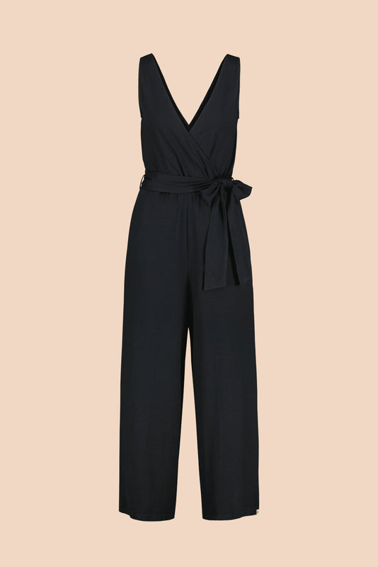 Experience effortless style and comfort with the Soft Jumpsuit, crafted from luxurious EcoVero™ viscose jersey that feels silky soft against the skin and flows gracefully. Featuring a chic wrap-around top, an elasticated waist for a flattering fit, and practical front pockets, this jumpsuit combines fashion with function. The wide, slightly flared legs add a touch of elegance, while the removable belt lets you customize the waistline to suit your personal style.