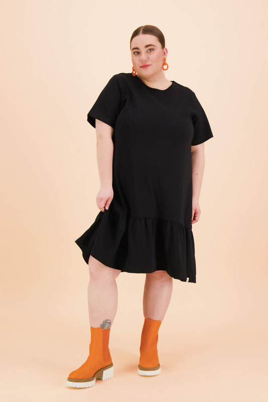 Kaiko's sharp T-shirt Frill Dress is made from high-quality, pleasantly thick and sturdy cotton jersey. The dress has a relaxed fit with a slightly longer t-shirt sleeve and a playful frill at the hem.