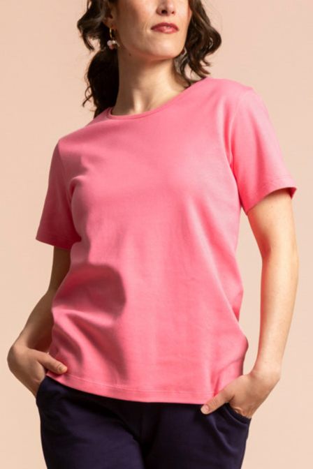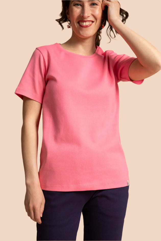 The T-shirt by Kaiko is a solid tee with a somewhat boxy, relaxed fit. The T-shirt is made from high quality, comfortably sturdy cotton interlock. The shirt has a round neckline and a hem that reaches approximately to the hip. Made to last, The T-shirt wears well and is a timeless anchor piece for any wardrobe.
