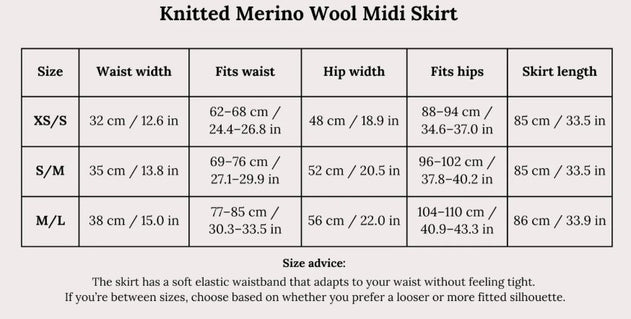 A skirt built for understated refinement. This made-to-order merino wool piece features a gently flared silhouette that moves with ease through every season. Hand-knitted on manual machines and finished by hand in Lithuania, each garment reflects slow, intentional craftsmanship. The elastic waistband and ribbed hem provide subtle structure, while 100% responsibly sourced merino wool ensures durability and biodegradability.