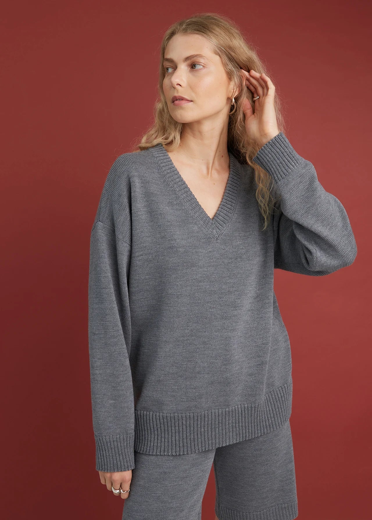 V-Neck Sweater and Shorts Set