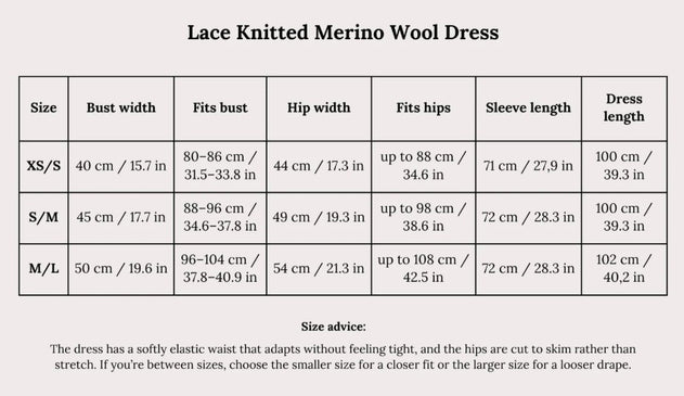 • The dress has a softly elastic waist that adapts without feeling tight, and the hips are cut to skim rather than stretch. If you're between sizes, choose the smaller size for a closer fit or the larger size for a looser drape.