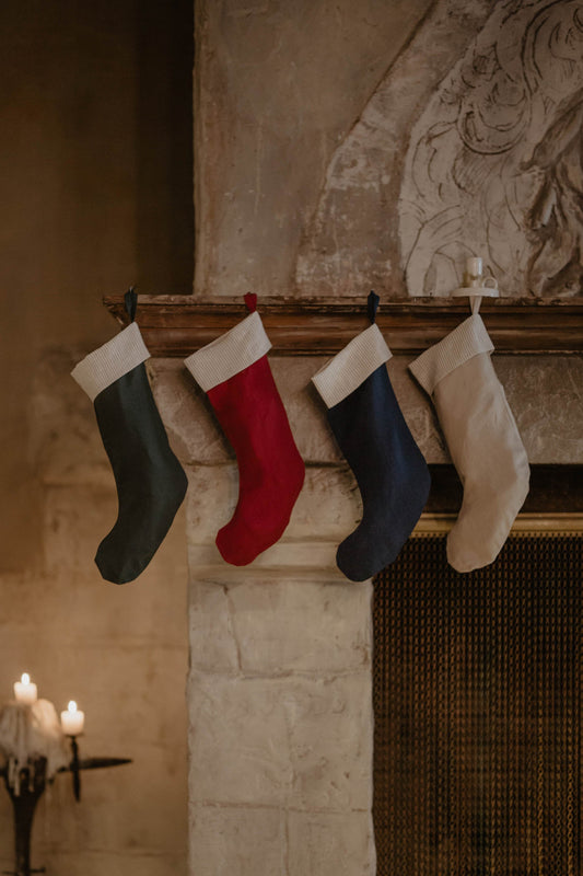 Linen Christmas Stocking With Plain Cuff