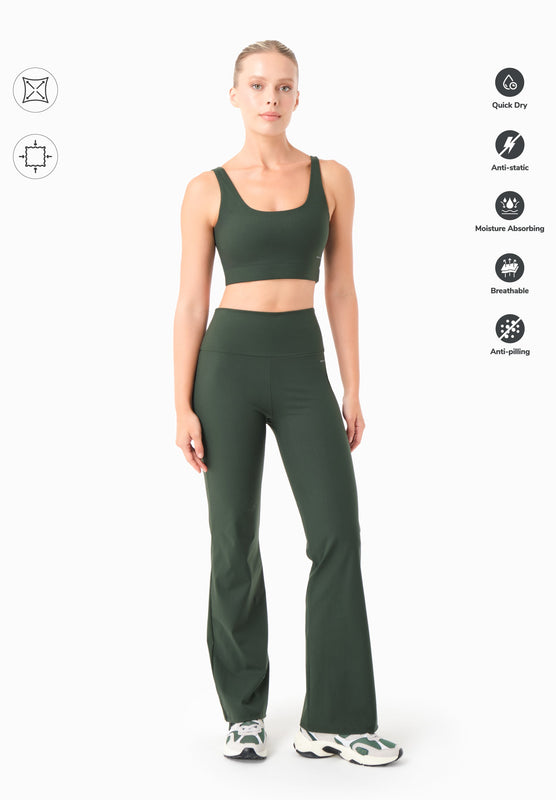 LAVINN Sport Pants in Amazonas Green deliver performance and refinement for active pursuits. The high-waisted, slim-fit silhouette with subtle flare creates an elegant line while the elastane interlock fabric—56% recycled polyamide and 44% elastane—provides exceptional stretch and breathability. Quick-drying and anti-static properties support dynamic movement through yoga, Pilates, and moderate-intensity training. Signature 3D logo detailing at the back waistband and front left adds contemporary sophistication. Ankle length, designed for a 1.76 m model wearing size S.