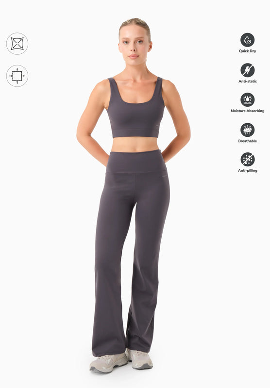LAVINN Sport Pants in Shadow deliver performance and refinement for active pursuits. The high-waisted, slim-fit silhouette with subtle flare creates an elegant line while the elastane interlock fabric—56% recycled polyamide and 44% elastane—provides exceptional stretch and breathability. Quick-drying and anti-static properties support dynamic movement through yoga, Pilates, and moderate-intensity training. Signature 3D logo detailing at the back waistband and front left adds contemporary sophistication. Ankle length, designed for a 1.76 m model wearing size S.