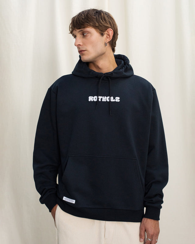 The three-dimensional logo embroidery is centered on the hoodie, featuring our classic relaxed fit.