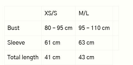 | Sleeve | 61 cm | 63 cm | |