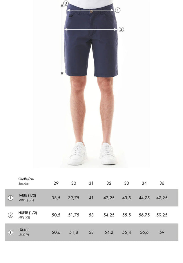 Men's five-pocket style shorts in a bermuda length. The shorts are garment dyed and made of stretchy organic cotton twill.