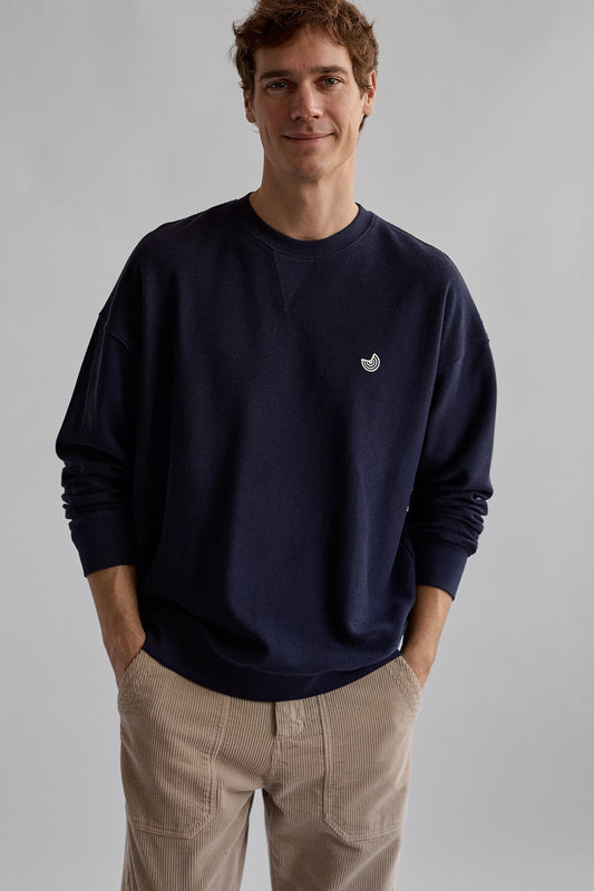Crafted from the softest organic material, the Middelhagen crewneck features an innovative reverse fabric construction showcasing a distinctive diagonal rib pattern. It offers a relaxed silhouette complemented by dropped shoulders for added comfort.