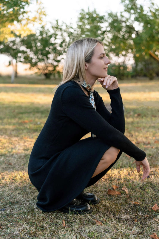 Timeless elegance meets sustainable craftsmanship in our Mini A-Line Dress. Knitted from 100% responsibly sourced merino wool, this piece combines softness and breathability with a flattering silhouette that moves beautifully with you. The crew neck and long sleeves create a refined silhouette, while the graceful A-line cut works seamlessly from day to evening.