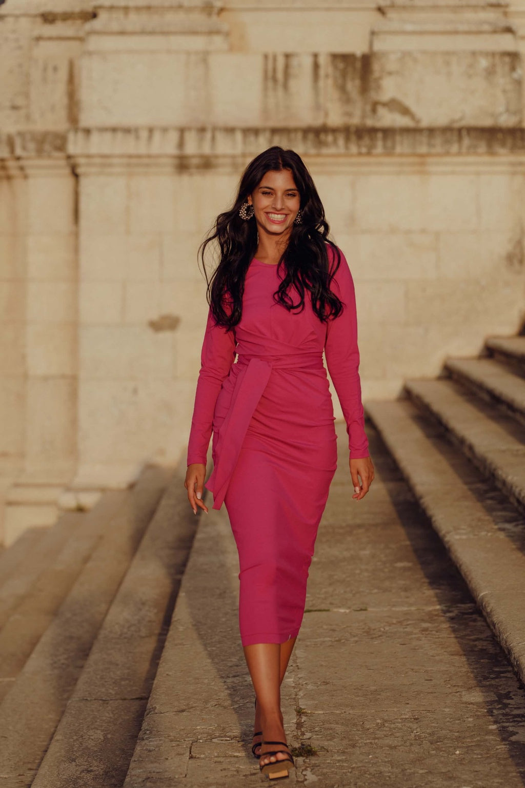 Classic Linen Dress Peacock Pink - IVALO.COM