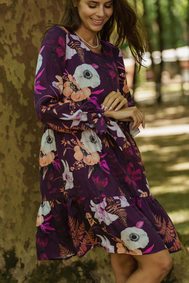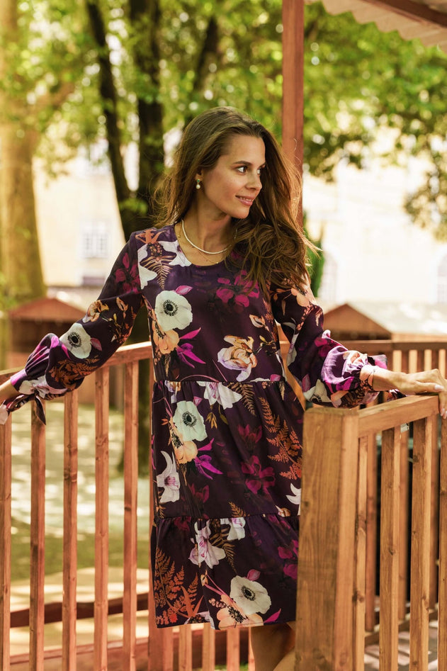The Hailey Dress is a knee-length tiered dress, featuring beautiful bow sleeves as a detail. There is a slit and a small button at the back of the neck to make dressing easier. The Fillsens fabric works well in the dress, draping beautifully to create a sophisticated impression.