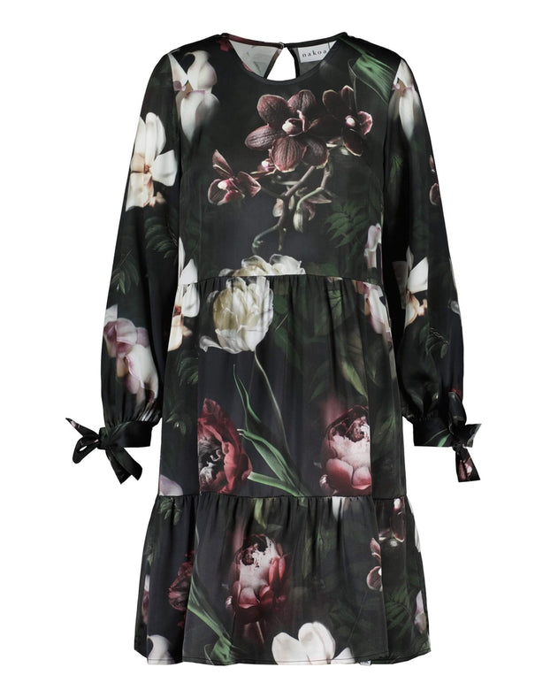 The Hailey Dress is a knee-length layered dress with beautiful bow sleeves as a detail.