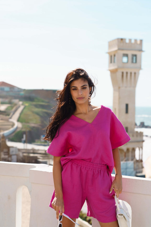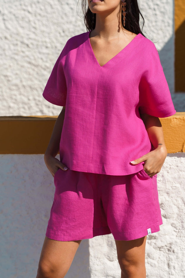 These linen shorts are the perfect choice when you are looking for breathable and lightweight shorts for hot summer days. The timeless design and relaxed fit make the Savanna Shorts versatile and stylish. They feature side pockets and a wide elastic waistband for excellent comfort, and the length reaches slightly above the knee.