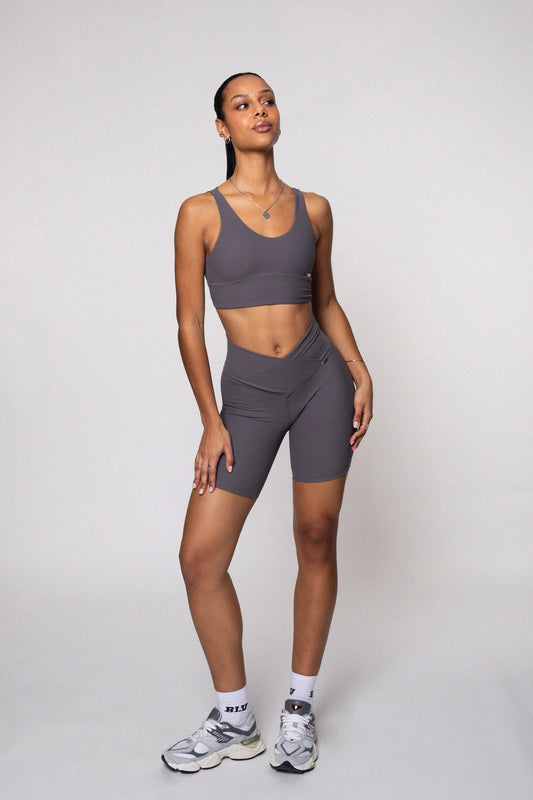 The Palms Sports Bra has a clean design and low-cut back with crossing straps.