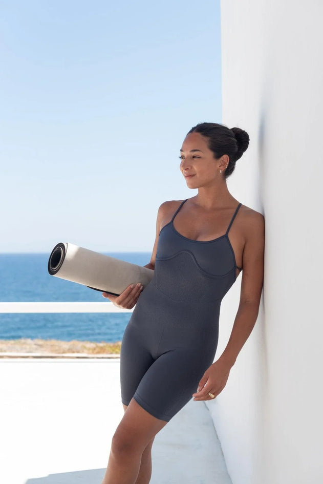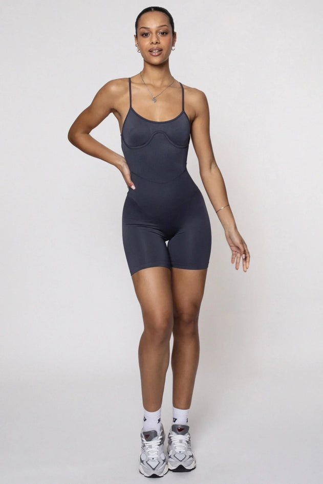Impressive jumpsuit with a corset-style bodice featuring intertwined straps, an elegant curved hem, and flattering trims to shape your curves. Seamless technology for greater comfort and a velvety touch fabric. Experience the luxury of super soft and stretchy fabric that moves with you throughout the day.
