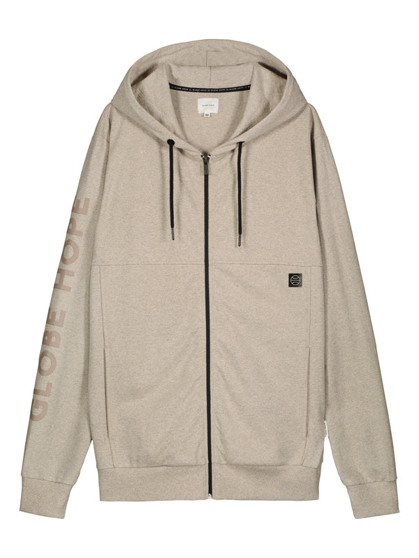 DOLOMIITTI hooded jacket is made of 100% recycled yarn. It comes with "Globe Hope" 3D print on the sleeve, and vertical seams with pockets.