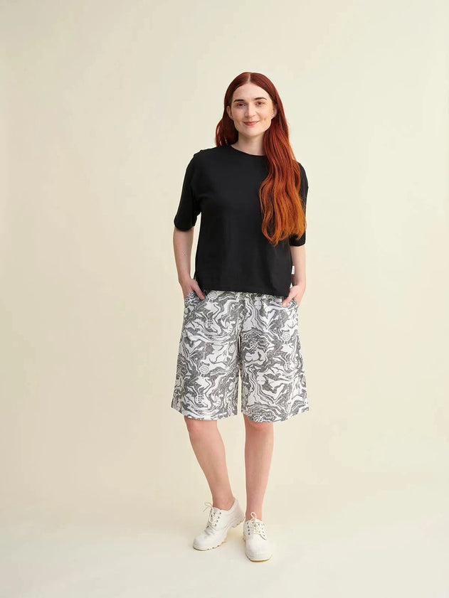 The 3D vibe is a bold look for the summer. Lietukka loose fit shorts are comfortable and made with materials that give our planet a little help. These shorts are a perfect match for the urban adventurer who loves to be earth-conscious but also little edgy.