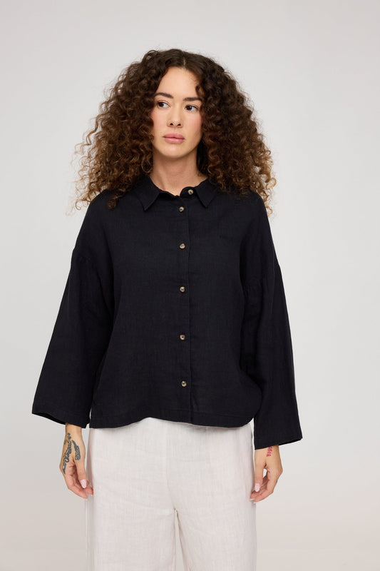 The Mazine 3/4 Sleeve Linen Shirt combines style and comfort with its 100% natural linen fabric. Designed for warm days, it features a classic collar, vegan horn buttons, and logo embroidery for a timeless look. The dropped shoulders, shortened sleeves, and side slit hem add a modern, casual touch, while the regular fit ensures all-day comfort.
