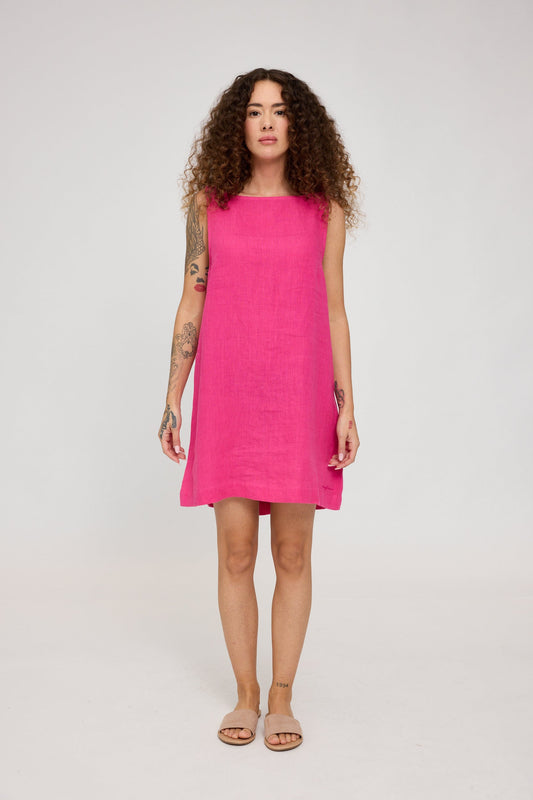Mazine's A-Shape Linen Dress blends comfort and style with its 100% natural linen fabric, perfect for warm days. The sleeveless, mini-length design and A-line cut offer a flattering fit and freedom of movement, while the logo embroidery on the hem adds a stylish touch.