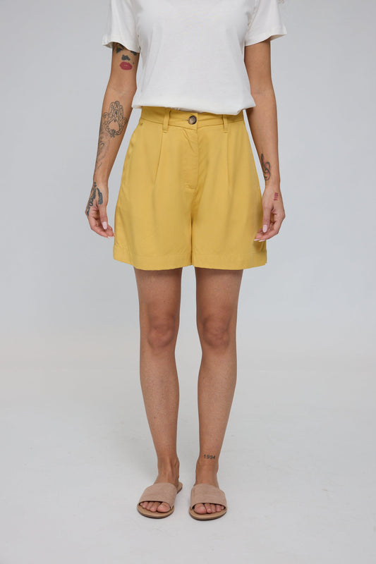 Mazine's Pleated Shorts offer a stylish, comfortable fit. Made from high-quality ECOVERO™ viscose, they’re soft and lightweight, while classic pleats create a modern silhouette. With a regular fit and side pockets, these shorts are both functional and chic—perfect for warm days and versatile styling for a relaxed yet elegant look.