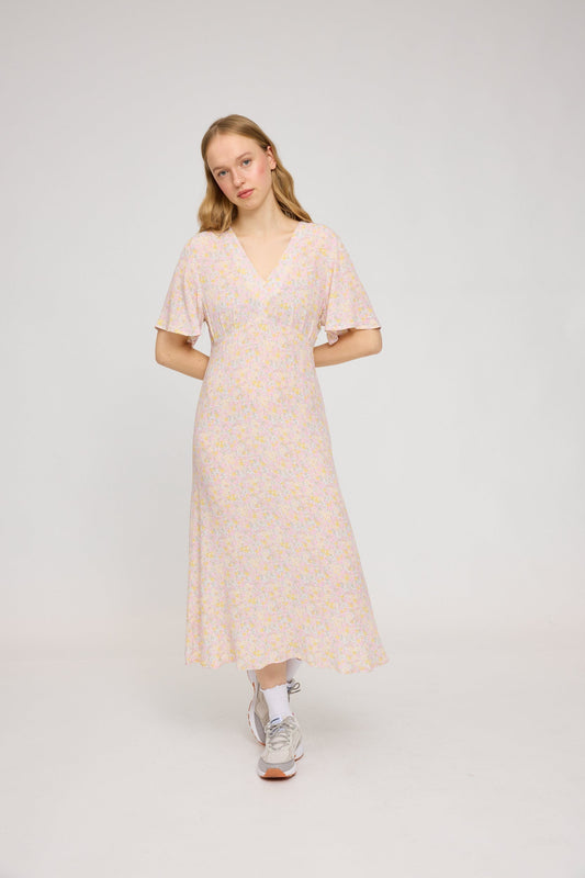 Make a statement with the Printed Crinkle Maxi Dress by Mazine. Made from high-quality ECOVERO™ viscose, it offers a soft feel with a sustainable touch. The vibrant all-over print, V-neck, and short sleeves add feminine flair, while the maxi length and regular fit combine comfort and style—ideal for summer occasions or relaxed days.