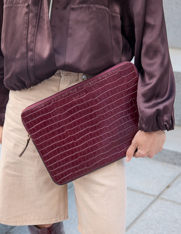 Laptop Sleeve 13"/14" Croco Print Leather Dark Cherry