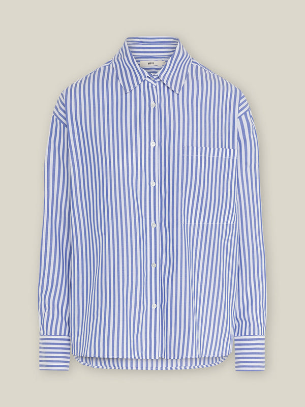 Favourite statement piece! The cool stripe shirt made of organic cotton! Slightly overcut shoulder, oversized shape and a patch breast pocket as well as enchanting little mother-of-pearl buttons. It is an absolute favourite and key piece of the capsule wardrobe. It has a rather straight cut at the front and is rounded and slightly longer at the back. It offers many possible combinations. Pure, as a layering style, open with a top underneath or preppy for the office!