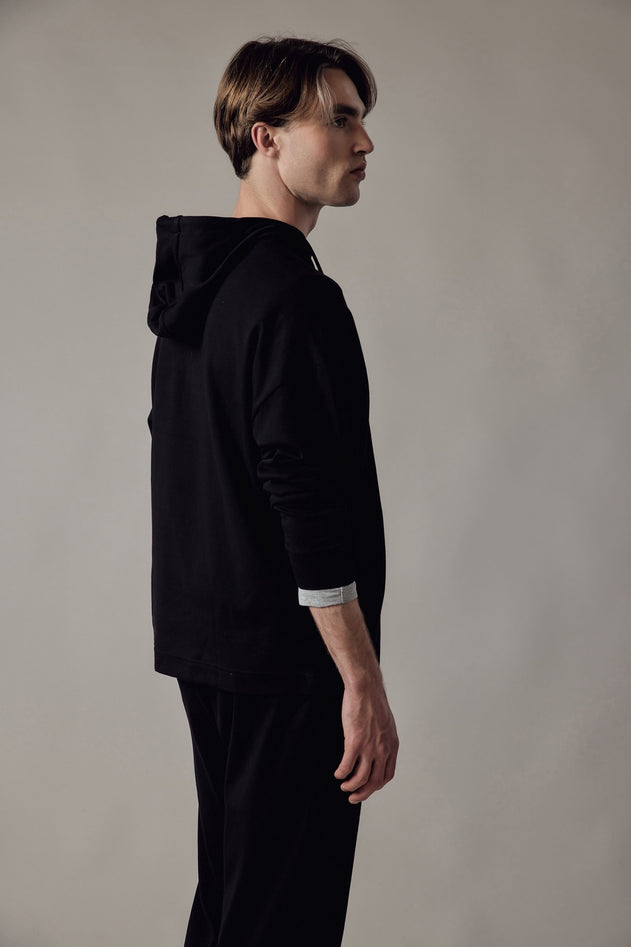 Stretch interlock hoodie. Certified and made from high quality organic cotton.